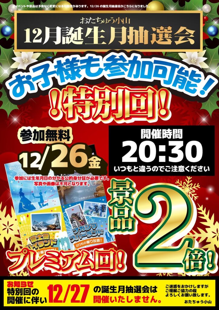 ⚠️緊急告知🚨 12/26金曜日の 誕生月抽選会が特別…