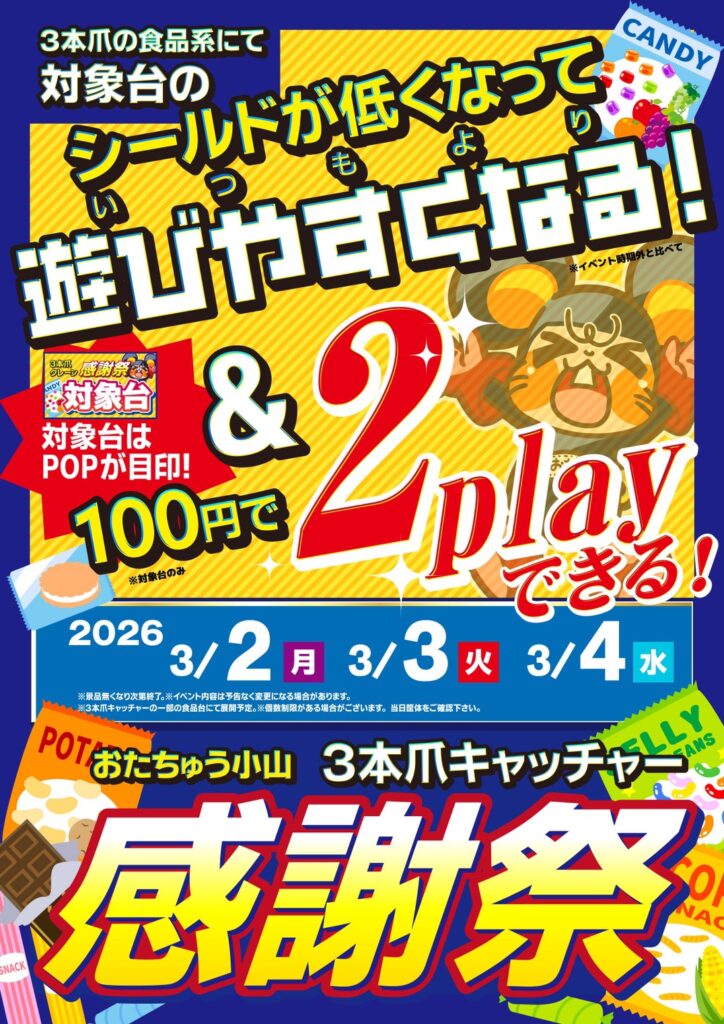 な、なんと! おたちゅう小山の一部の3本爪キャッチャーが… 日頃からの…