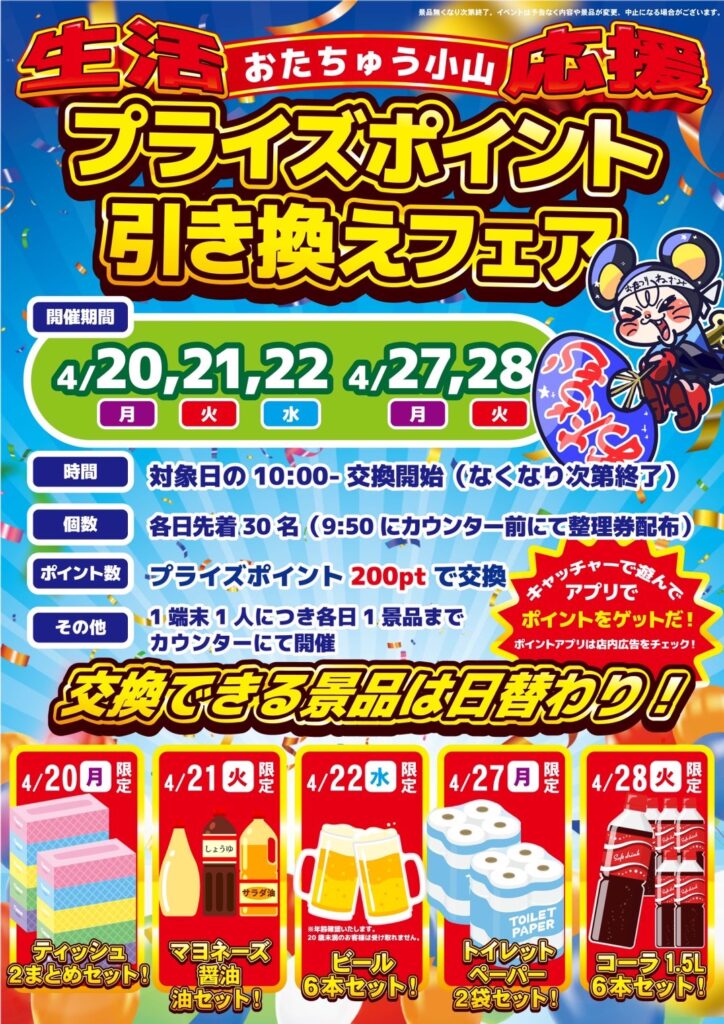 おたちゅう小山の生活応援! プライズポイント引き換えフェアが開催中…
