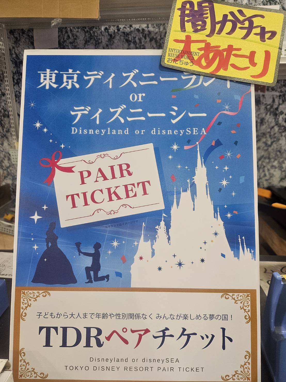 先程、闇ガチャから大当たりの東京ディズニーランドor東京ディズニーシーペアチケットが出ました!✨