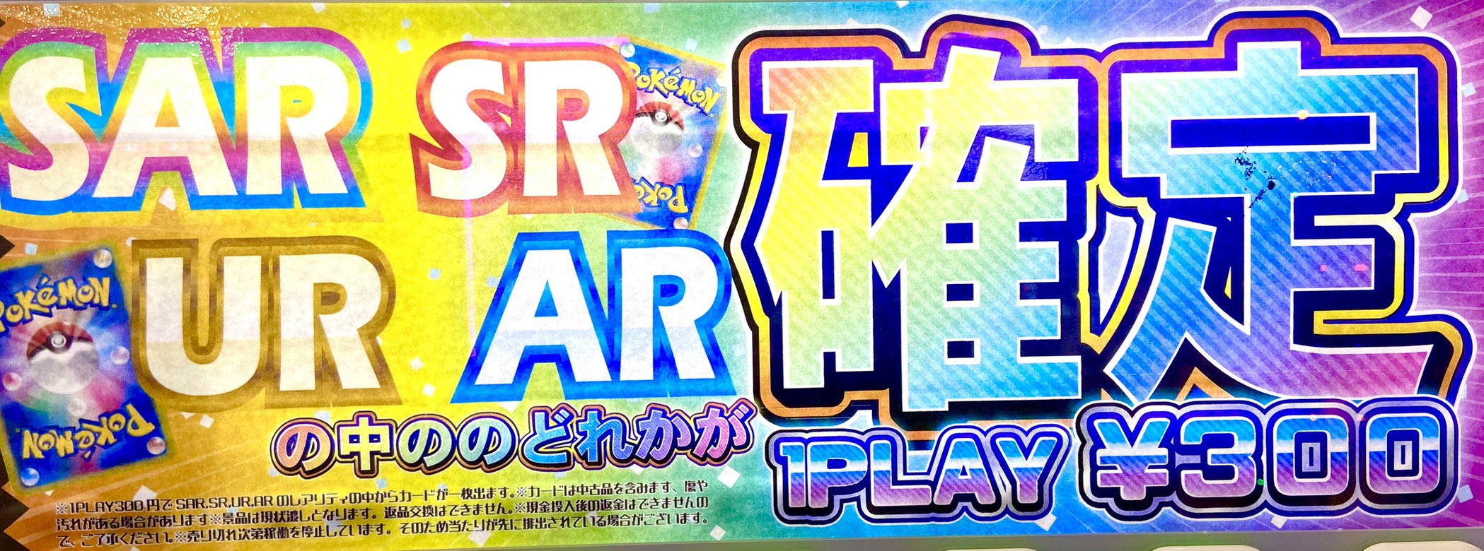 おたちゅう小山の大人気ポケカ自販機に新登場! ガチャ カード 2026年4月9日 おたちゅう小山の大人気ポケカ自販機に新登場! なんと今回は… SAR、SR、UR、AR のいずれかが確定!!! 1回300円! この4種類のレアリティから1枚確定! 何が出るかな… カウンター横の自販機にて稼働中! おたちゅう小山で高レアリティを狙っちゃおう!