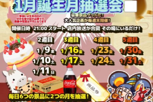 🟥1月誕生月抽選会⬜️ 今月は2週目から開催‼️